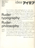 雑誌『アイデア』の333号、スイス・スタイルのタイポグラフィの基礎を築いたエミール・ルーダーの特集。「エミール・ルーダーとセリフ・タイポグラフィ」「エミール・ルーダーとサンセリフ・タイポグラフィ」「エミール・ルーダーとユニバース・タイポグラフィ」の三章に分け、ルーダーの著述と実作例を紹介。また、巻末には、エミール・ルーダーについてのテキストを収録。寄稿者はアーミン・ホフマン、カール・ゲルストナー、ウィム・クロウエル、アドリアン・フルティガー、ヘルムート・シュミット、山本太郎ほか。